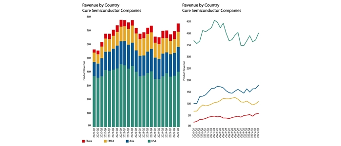 Poza segmentami AI i pamięci chińskie firmy systematycznie zdobywają udziały rynkowe kosztem zachodnich spółek rdzeniowych, podczas gdy przedsiębiorstwa z USA oraz regionu EMEA tracą udziały.